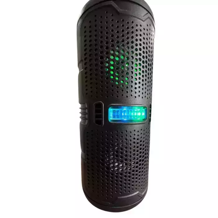 Com uma bateria recarregável de 1200mAh, você pode desfrutar de horas de música sem interrupções, seja em casa, no escritório ou em viagens. A caixa de som também possui uma variedade de opções de conectividade, incluindo entrada USB, entrada de cartão microSD (TF Card) e entrada de microfone do tipo P10 (microfone não incluso), permitindo que você reproduza música de diversas fontes.