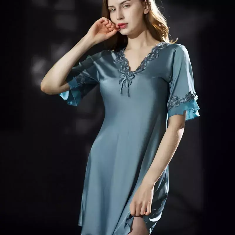 O cetim é conhecido por sua maciez e leveza, criando uma experiência de uso agradável que garante uma noite de sono tranquila e relaxante. Além disso, o design elegante e os acabamentos cuidadosamente trabalhados tornam esta camisola um item indispensável no guarda-roupa de qualquer mulher.