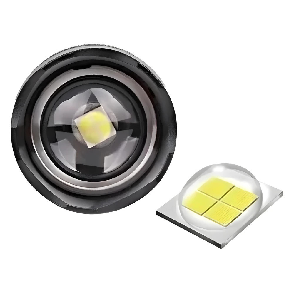 Esta é a lanterna mais potentes que você vai encontrar no mercado e além disso super resistente, usinada em liga de Aluminio Anodizado, indeformável, impermeável e anticorrosiva.